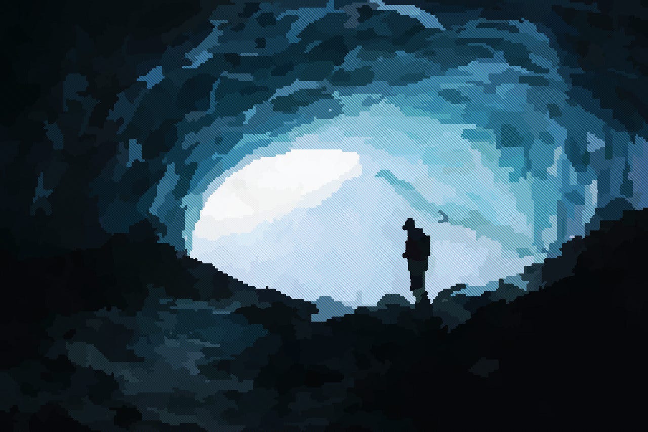 There were slick and narrow rock walls somewhere in the impenetrable dark. The man couldn’t see a thing. Trickling water just ahead, and the howling wind showed him the way back. If he got lost, maybe he could call for the dog—follow the sound of the barks.